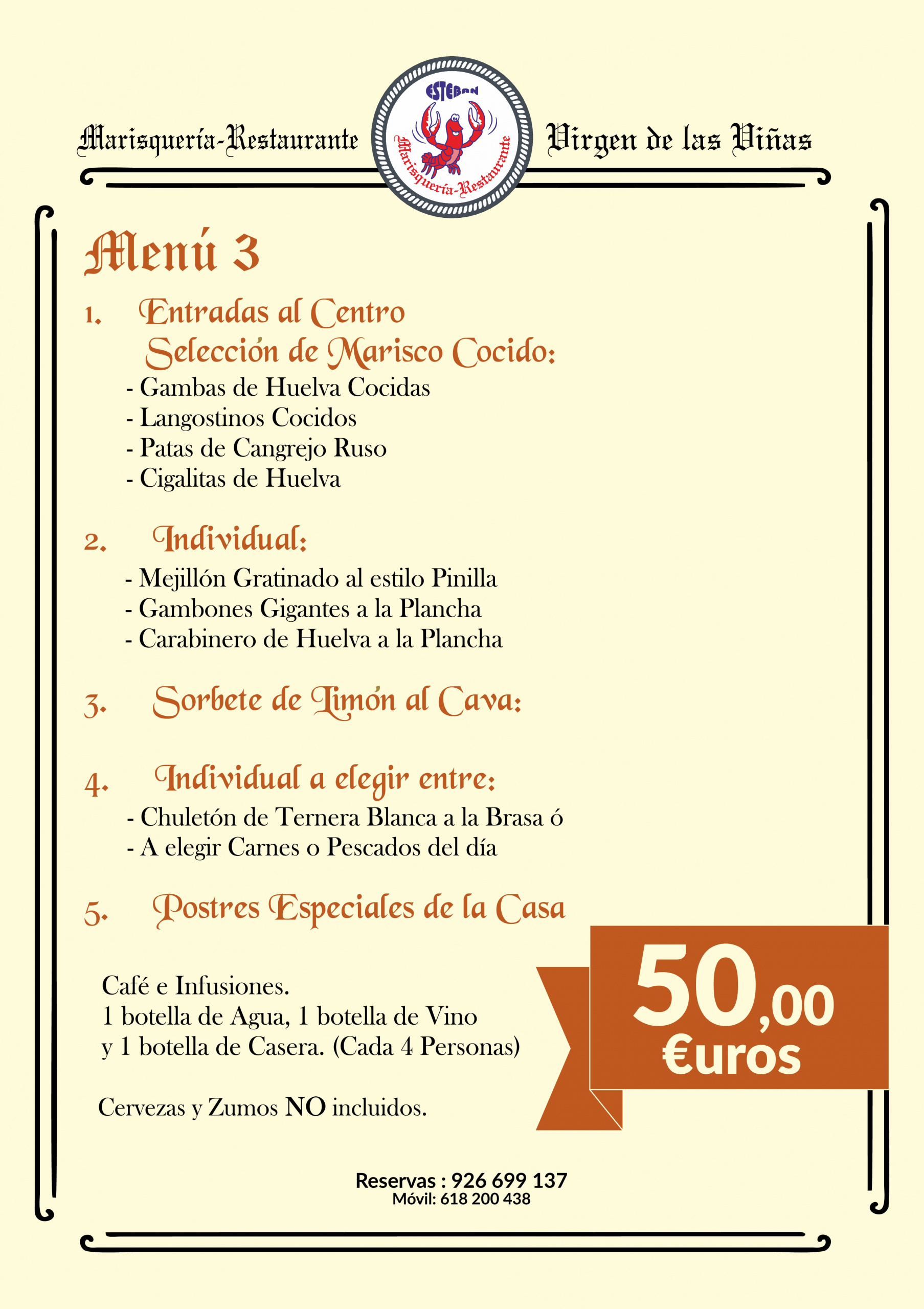 * Pregunten por nuestros mariscos frescos fuera de carta